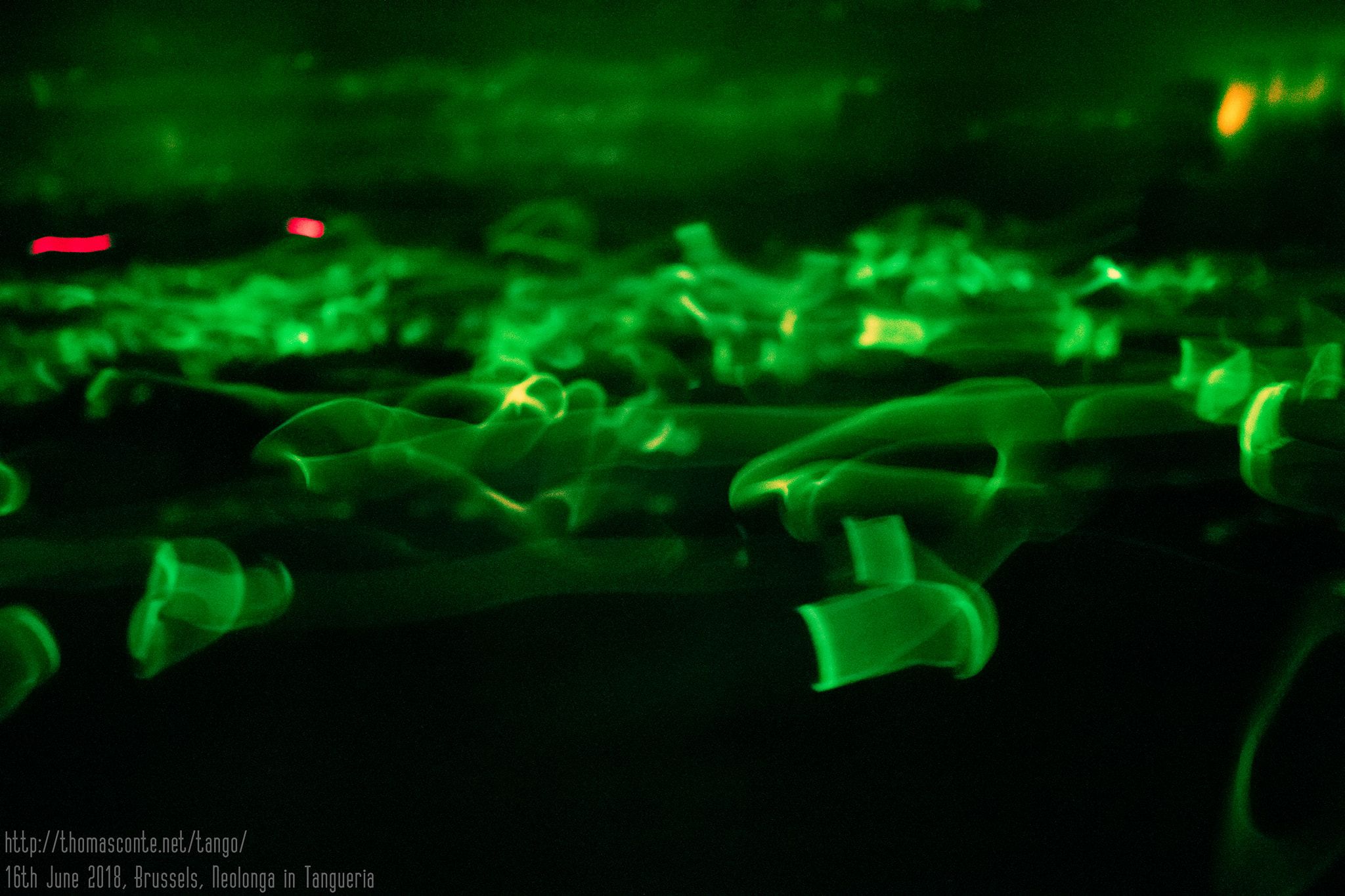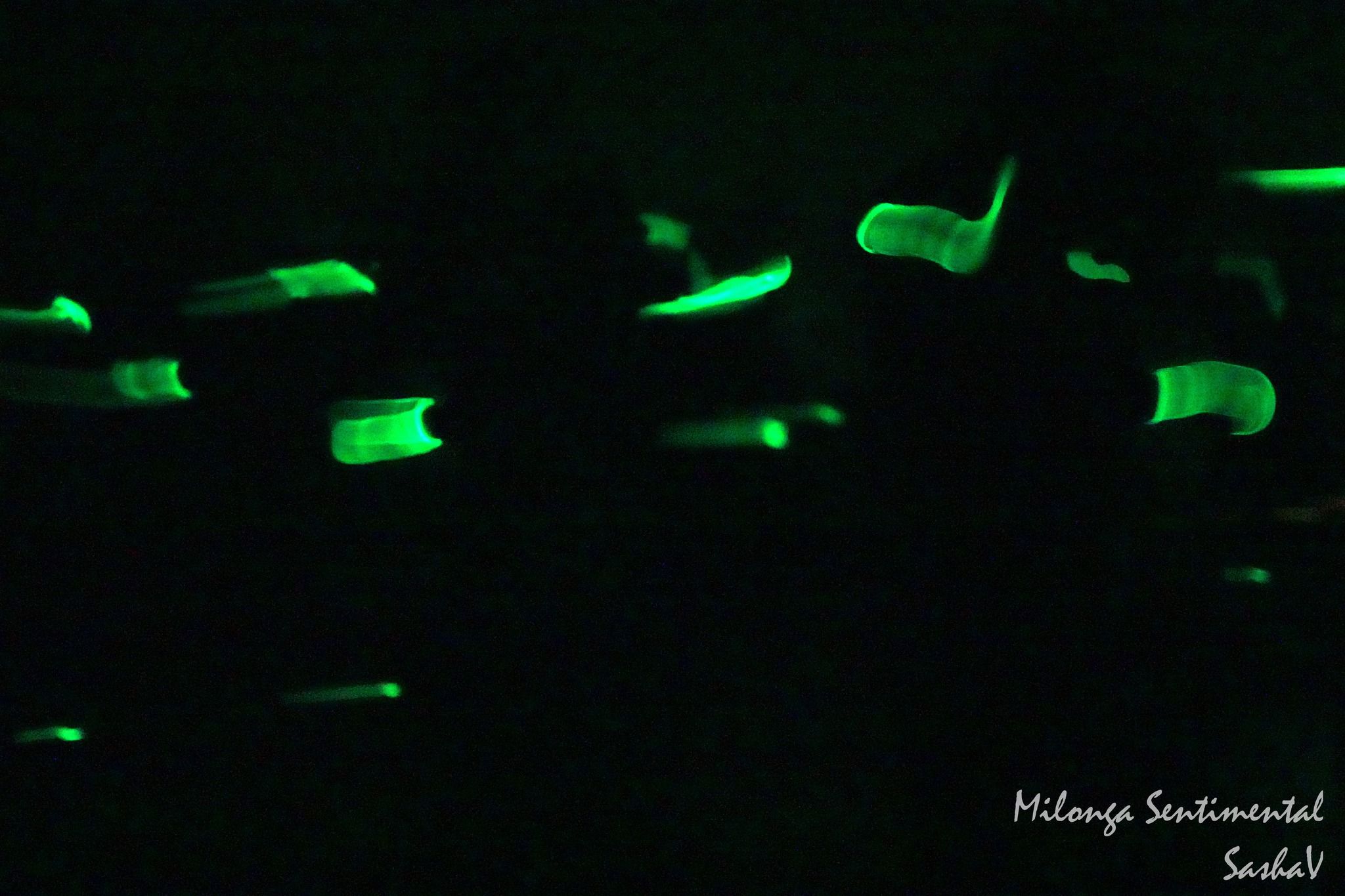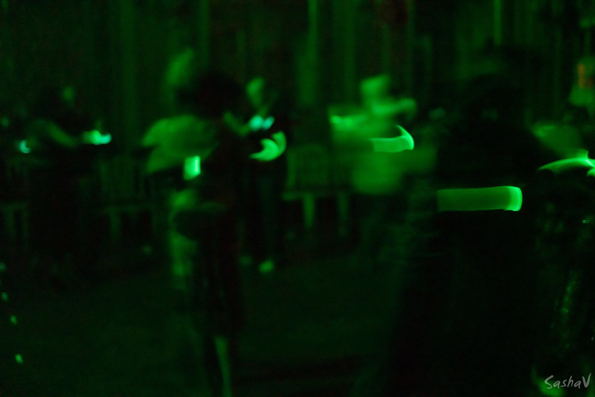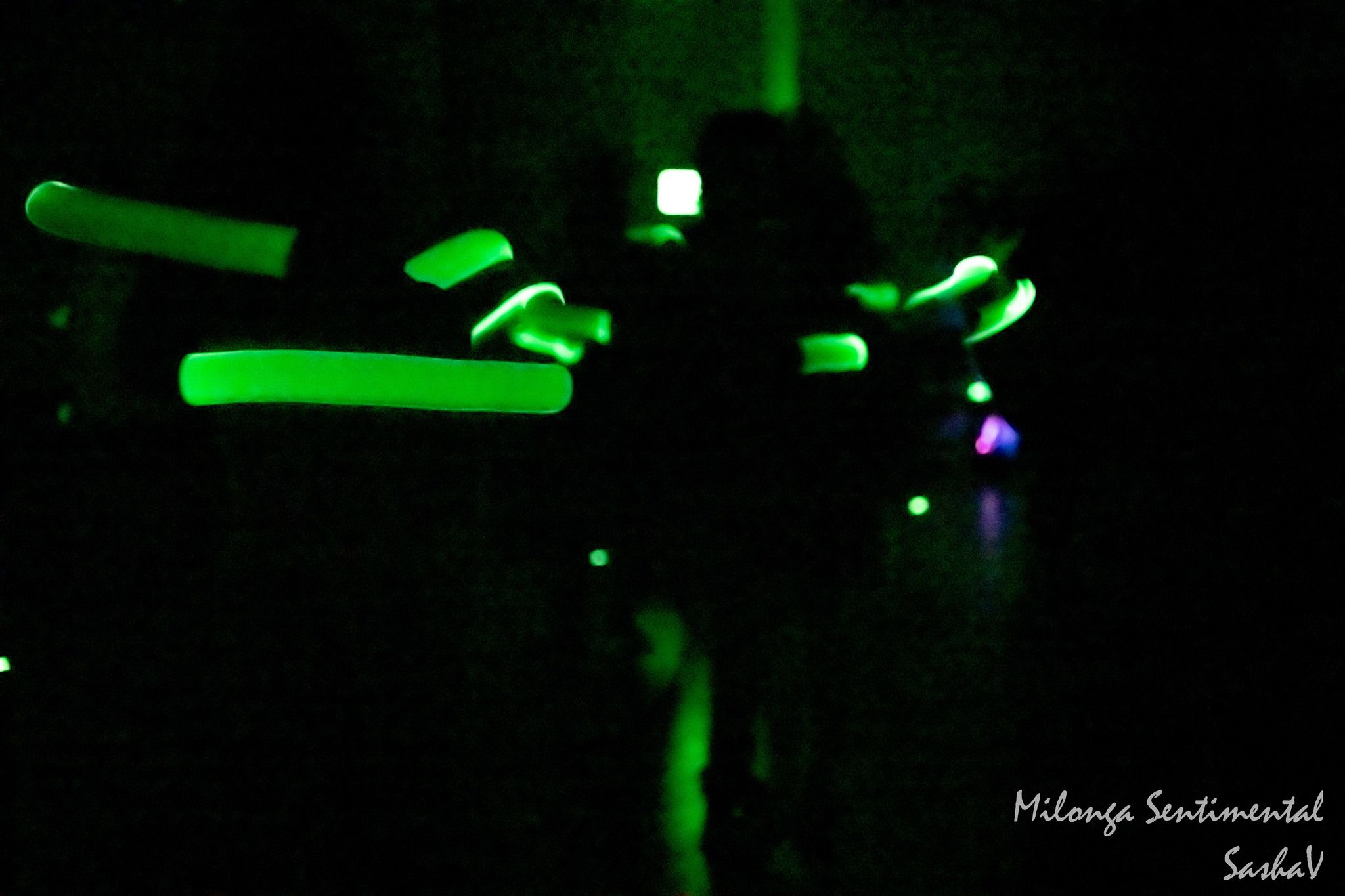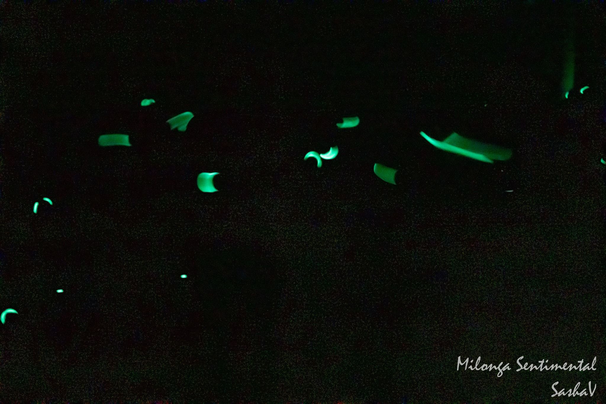 To avoid collisions, we use phosphorescent wristbands, so it looks like fireflies dancing in the night.